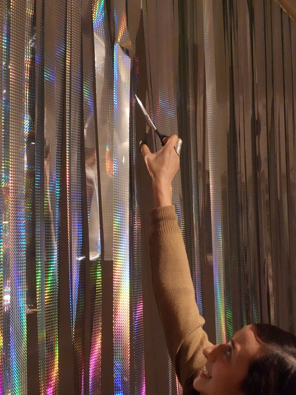In the installation the tensions and ambiguities of the dialectics between past and future, stasis and movement, deconstruction and construction find a final epitome in the metaphor of the strips of birds dissuaders assembled to form a curtain both repelling and permeable, a no thoroughfare to be run over by the researcher armed with awareness that destruction may be an unavoidable premise for creation. The curtain, then, as a plastic hypertext providing the key concept(s) allowing to find, identify, and deciphering, the individual texts, i.e. each work, of the artist. To cross the curtain amounts therefore to an act of learning, a reading qualification, a initiatory step, both in intellectual and empathic terms.